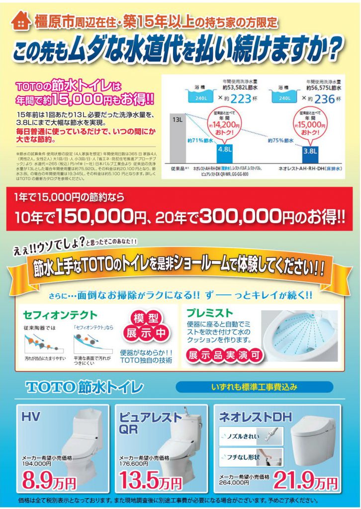 築15年以上の持ち家の方限定!トイレの節水で節約!